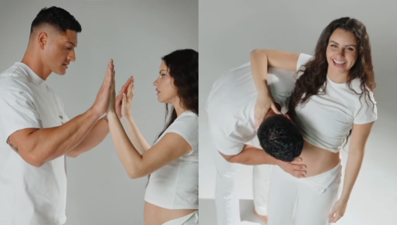 En el video, ambos aparecen recorriendo un laberinto simbólico mientras vuelan a su alrededor pájaros azules y rosados, creando un ambiente de expectativa. El momento final despeja la duda: una nube de humo rosado envuelve a la pareja mientras se besan, confirmando que serán padres de una niña. “Eres todo lo que esperábamos. Viniste a unirnos, a conectarnos y hacernos felices por siempre. Te amamos”, escribió la modelo en la publicación.