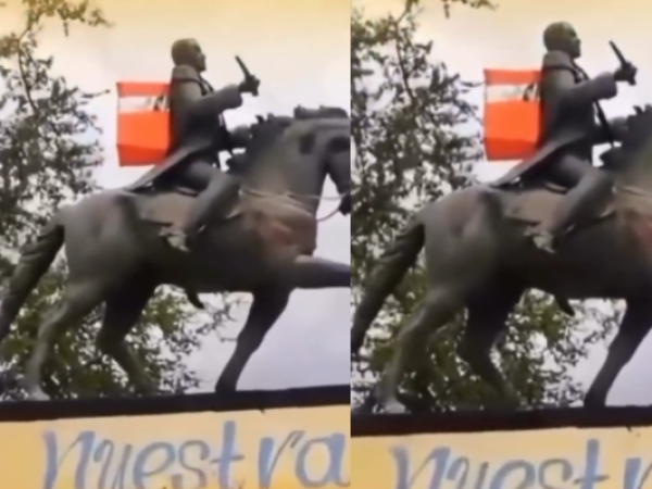 Video muestra estatua de Simón Bolívar con mochila de Rappi
