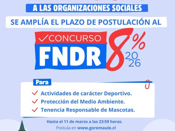 FNDR 8% Maule amplía plazo hasta el 11 de marzo